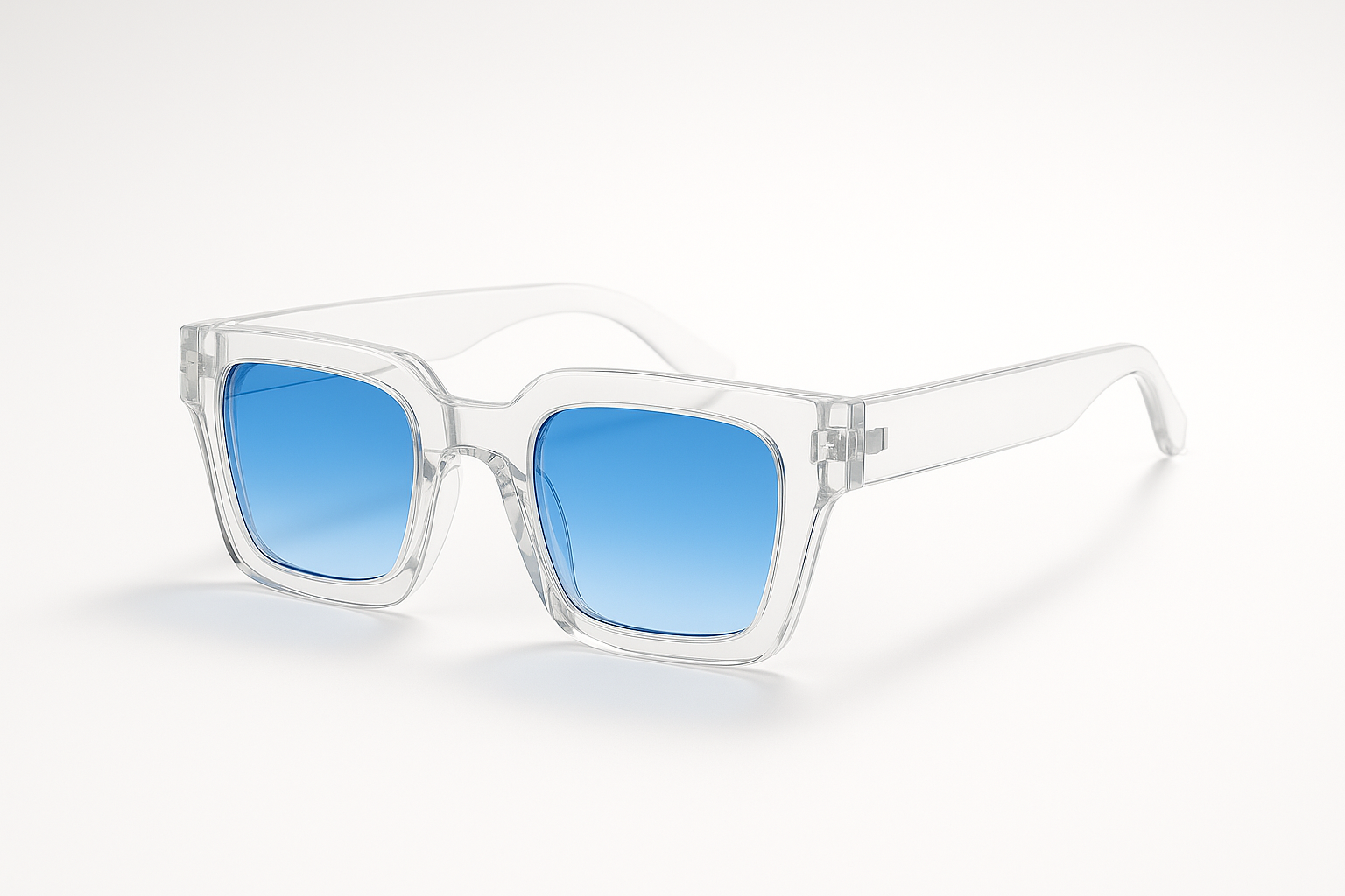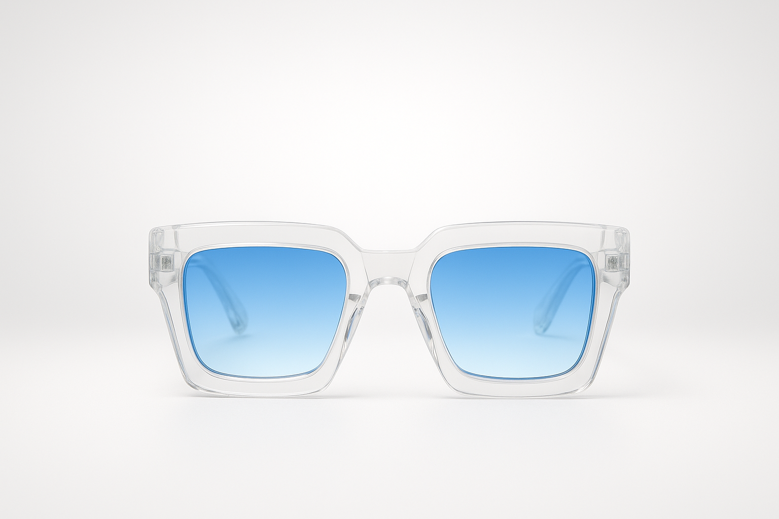 Lunettes de Soleil Carrées Transparentes à Verres Bleu Clair – Transparence Lumineuse & Style Aérien